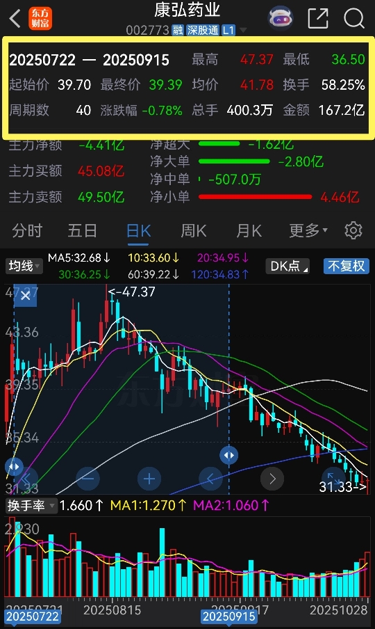 前面高价位追强势股入套的乍个跑的脱?成交均价都为41.78元!