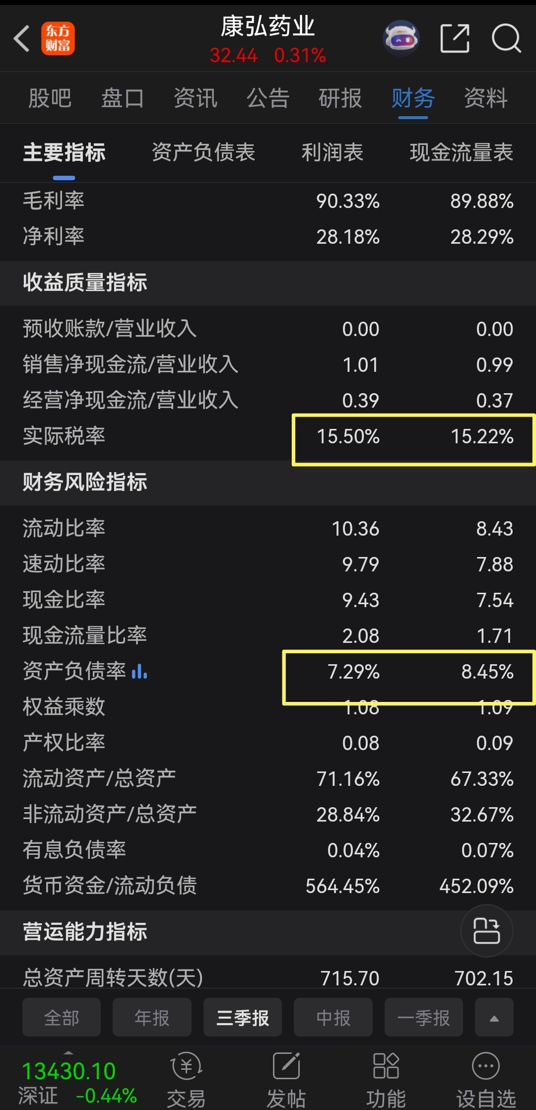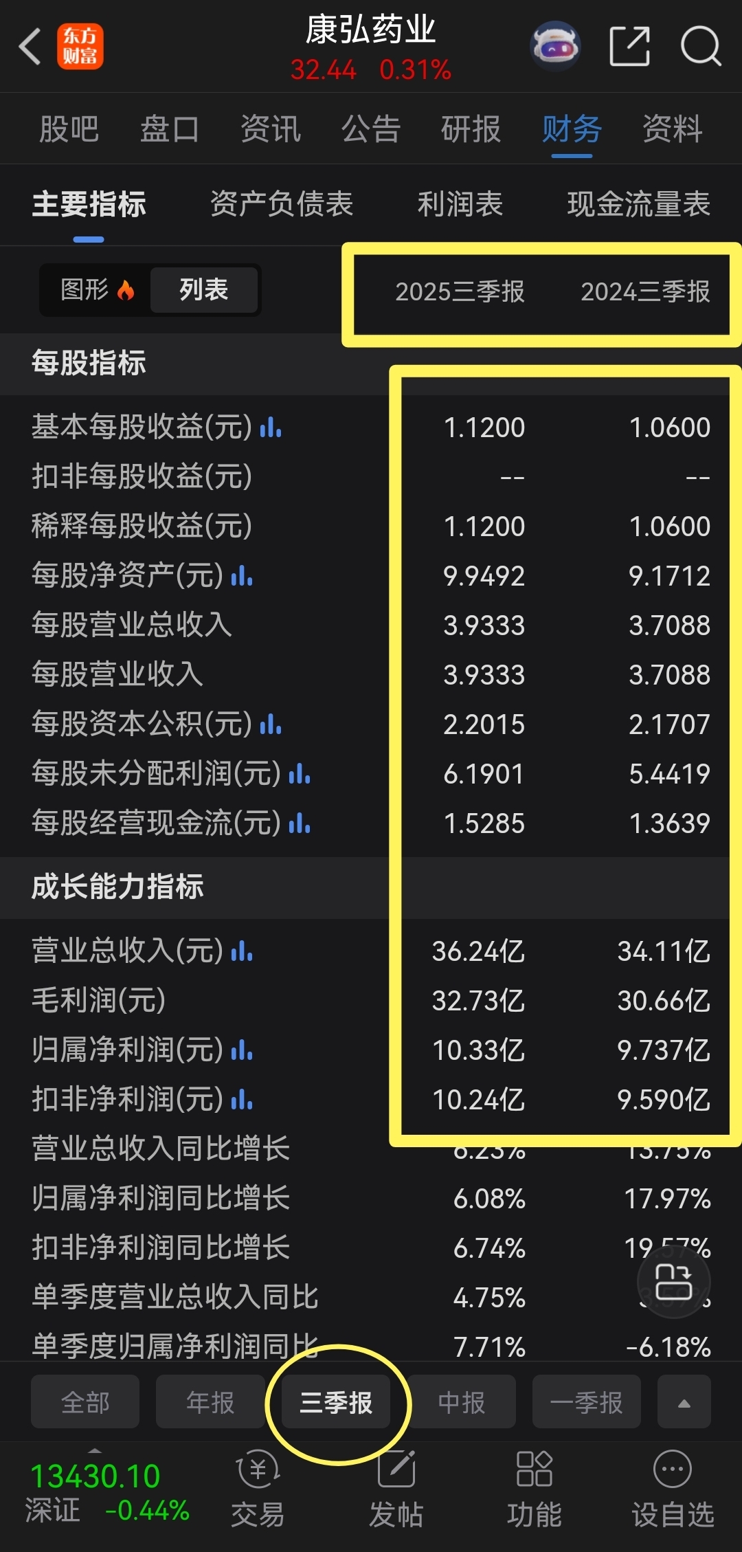 $康弘药业(SZ002773)$ 康弘三季度财报稳如一比!在税务约有增加的情况下,每股的净利润,净资产,现金流,资产负债,公积金未分配利润均好于去年同期三季度财报!寄希望基因生物治疗的新药研制的进展!雄起!康弘制药!