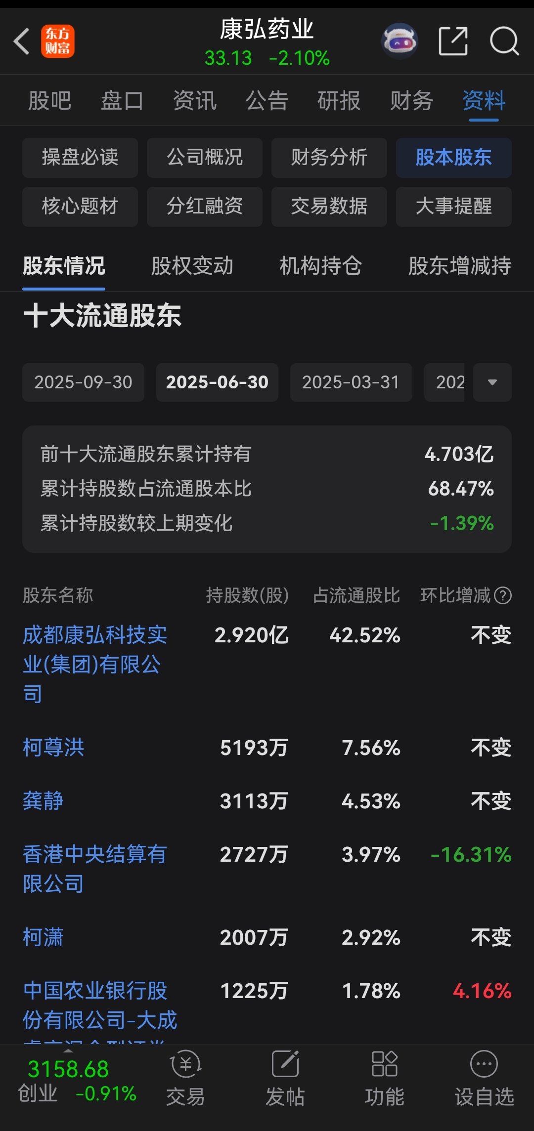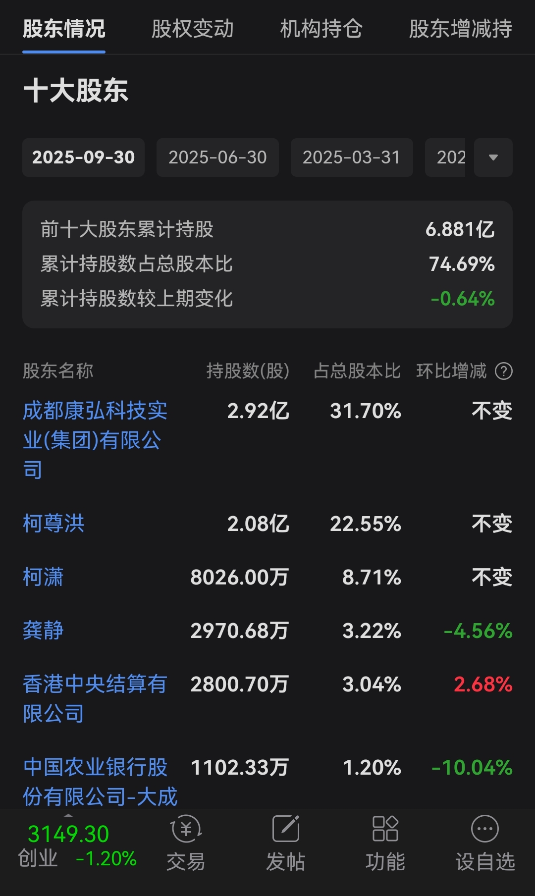 $康弘药业(SZ002773)$ 留守康弘的今天感觉咋样?康弘的大股东高管龚静,好像在三季财报中显示减了仓!
