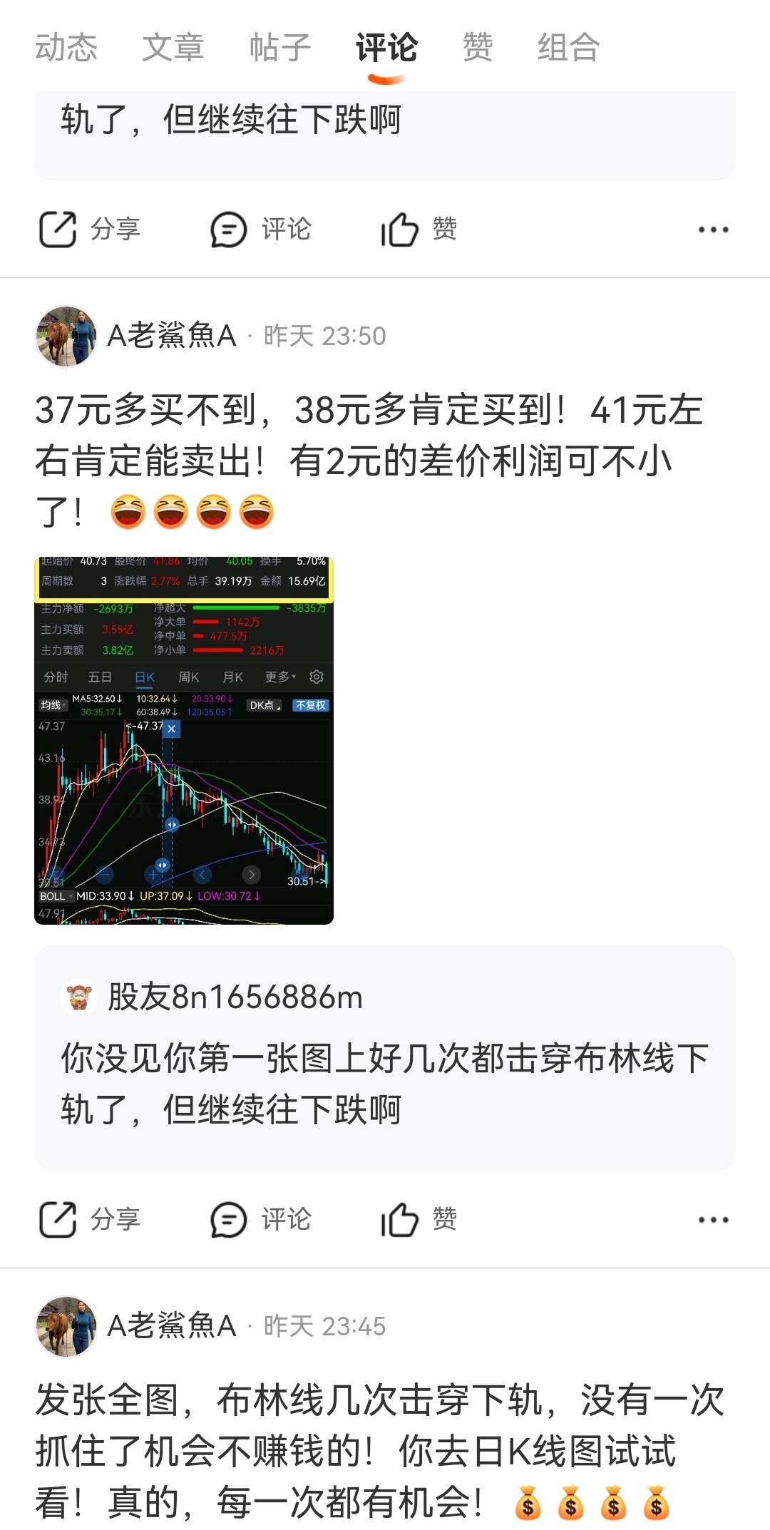 老鲨鱼回复举例了好几次击穿布林线下轨买入捡钱的战机!