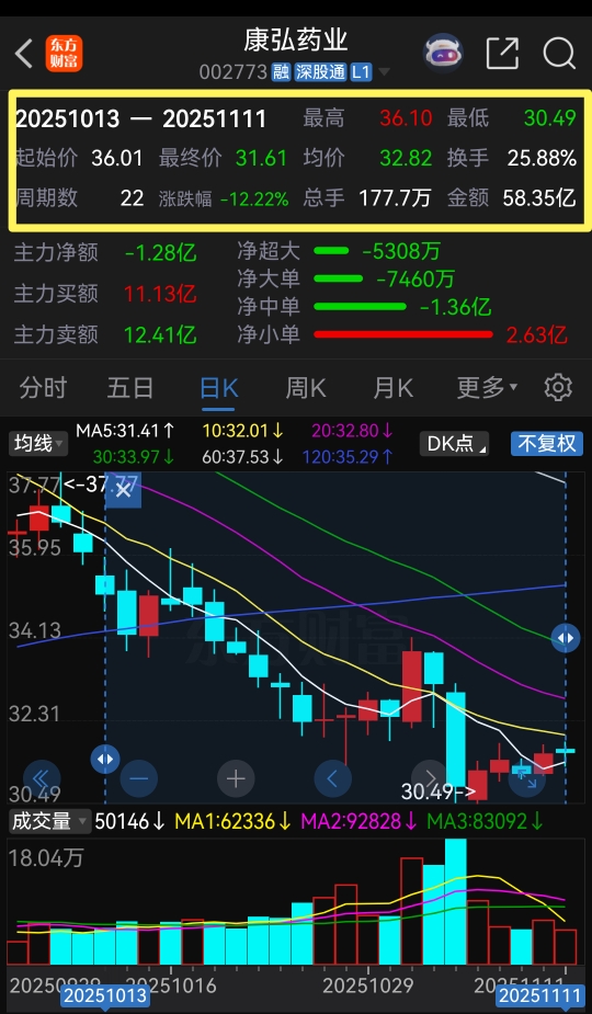 今天的成交量,为22个交易日以来的地量!基本上处于跌无可跌的地步!继续!