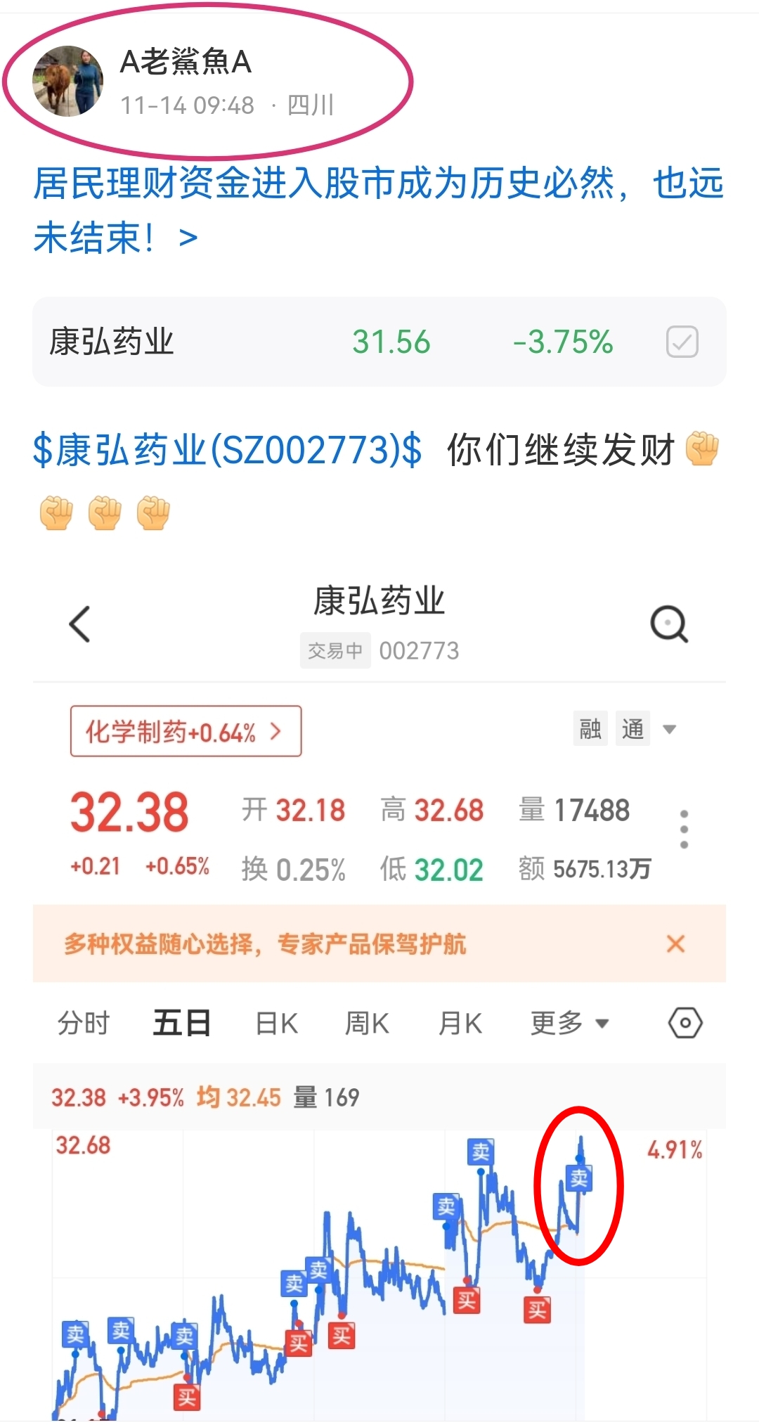 老鲨鱼上周五一开盘不久,卖后就二次给股友们提醒了哈!