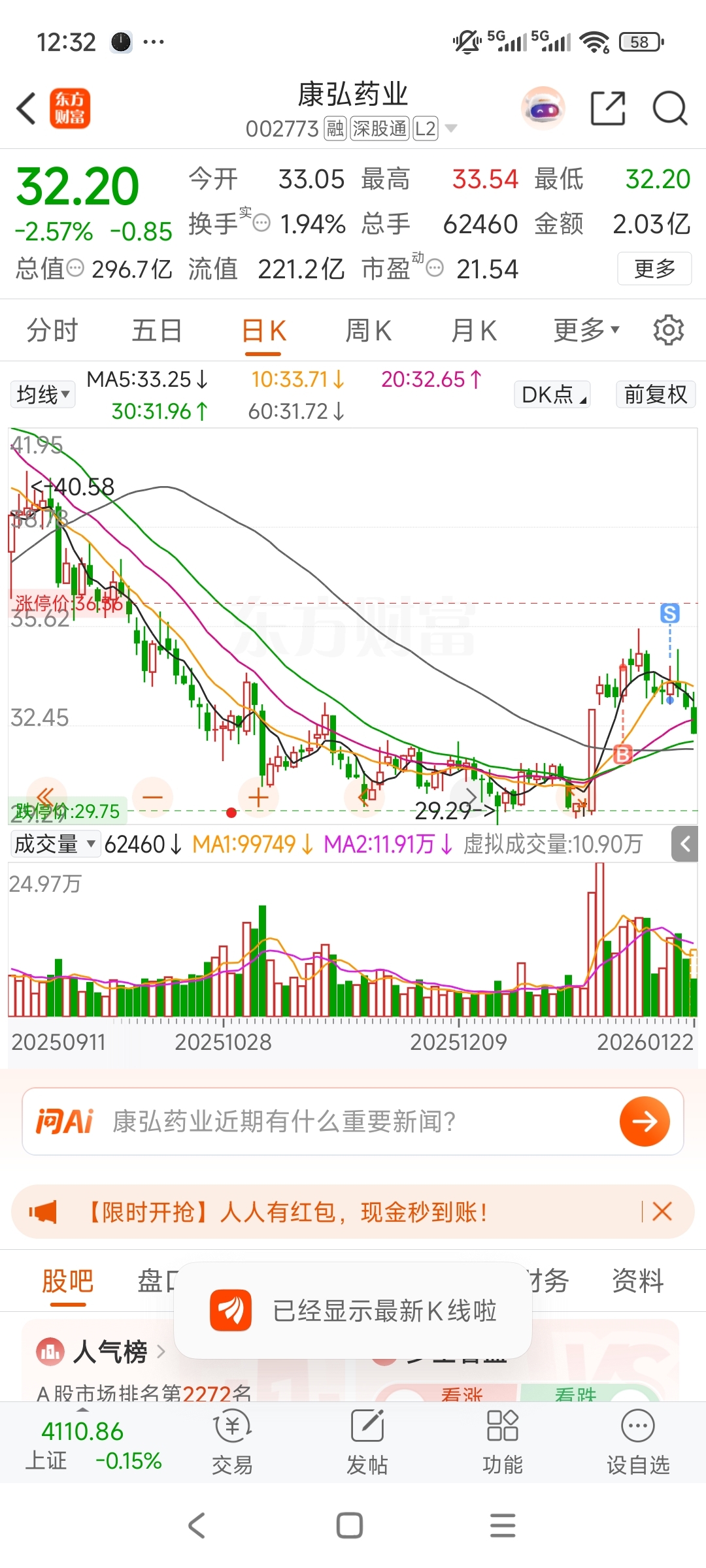 $康弘药业(SZ002773)$ 我卖的没错吧?恐慌了吧你们,等待地量地价重新进场