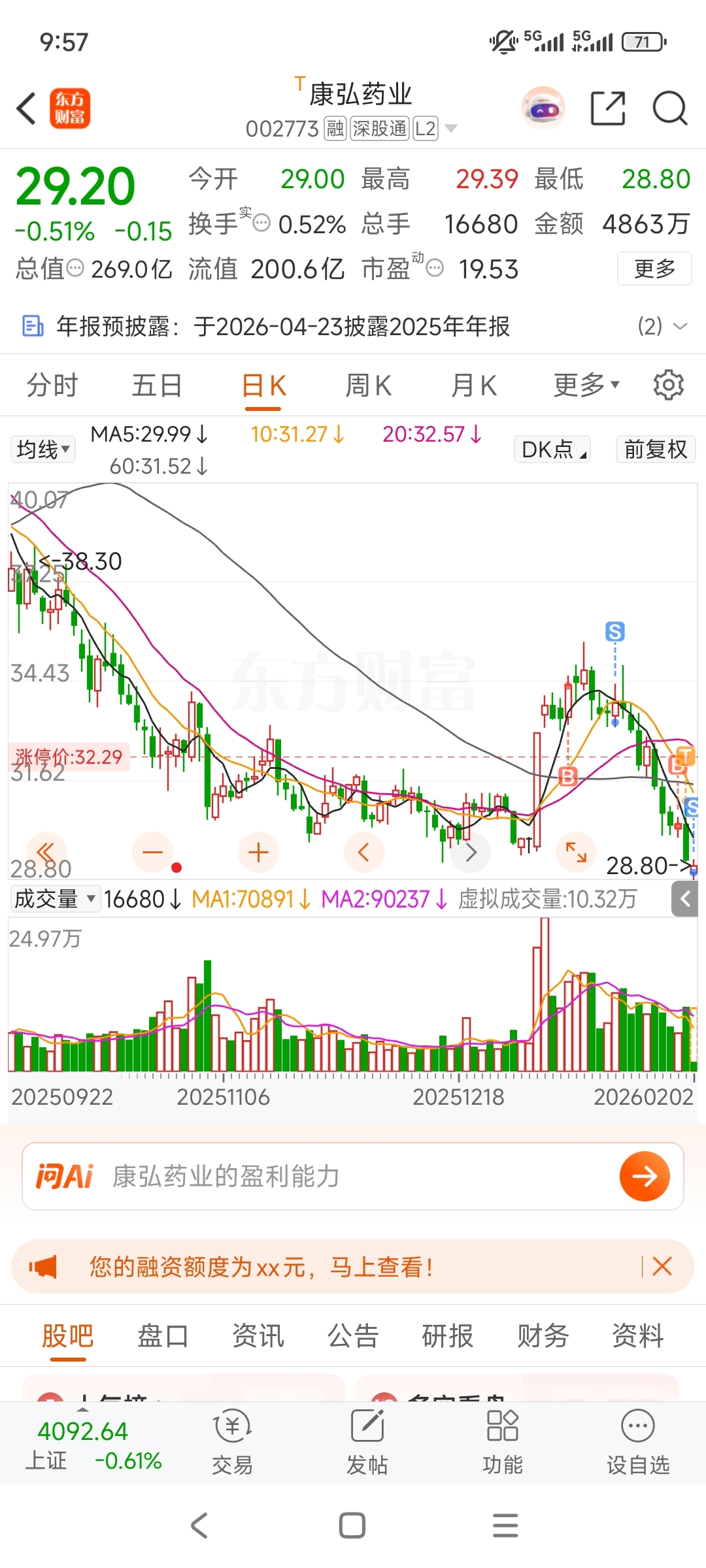$康弘药业(SZ002773)$ 说到做到,开盘不对劲直接止损,等走出趋势回调再进