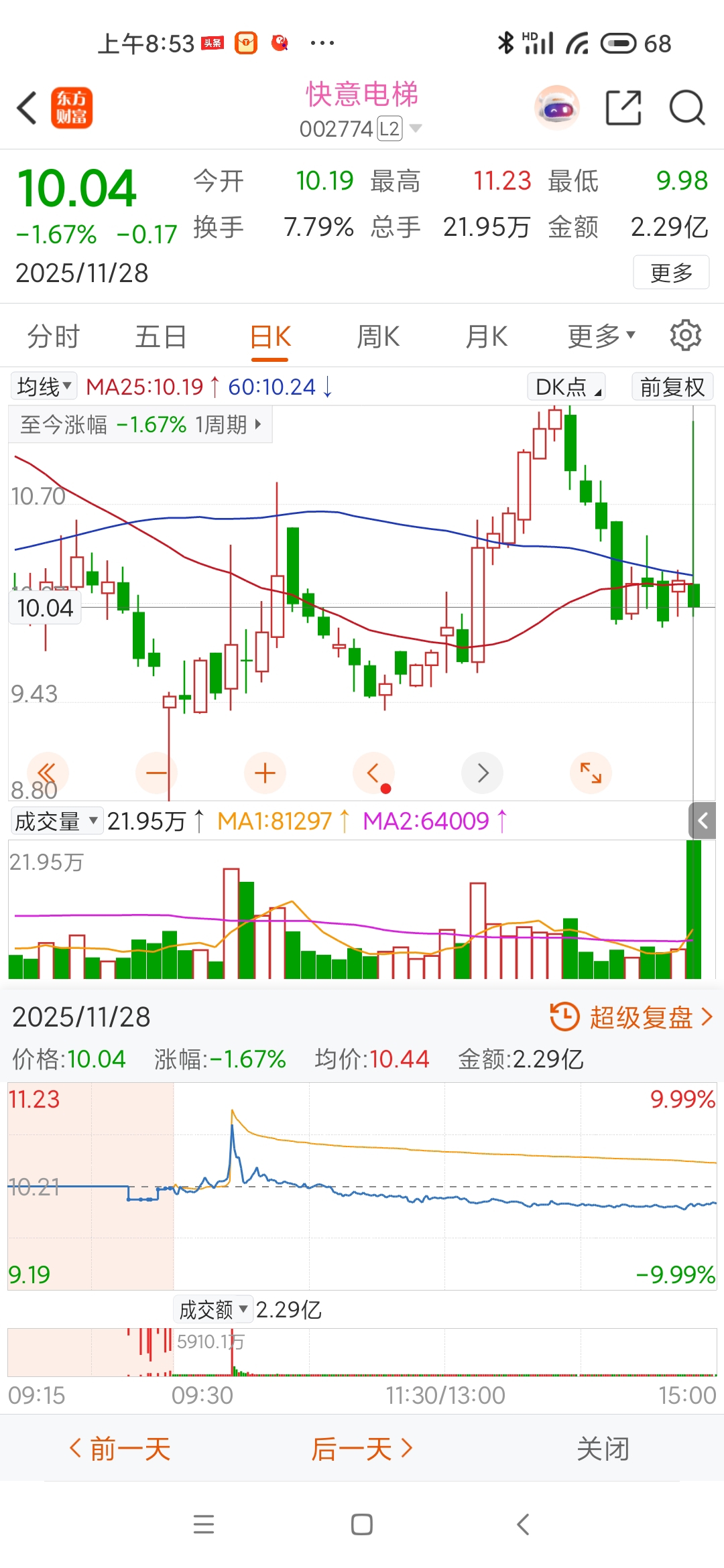 $快意电梯(SZ002774)$ 快意电梯就是惊魂,谁坐谁被吓死,一秒钟可以上10层再下10层楼