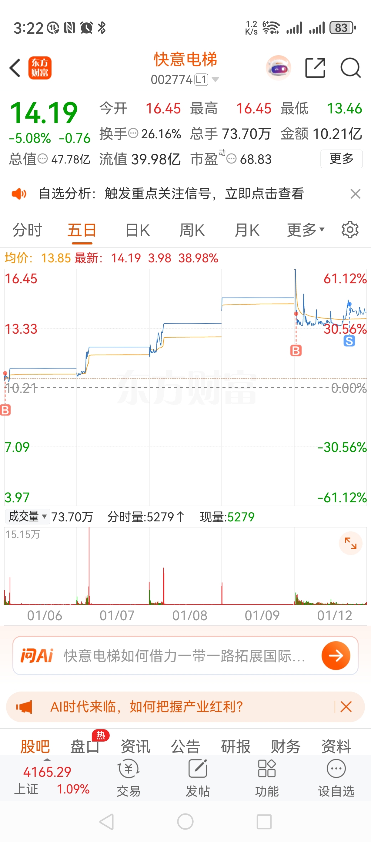 $快意电梯(SZ002774)$ 下来我还能T 我十块钱成本