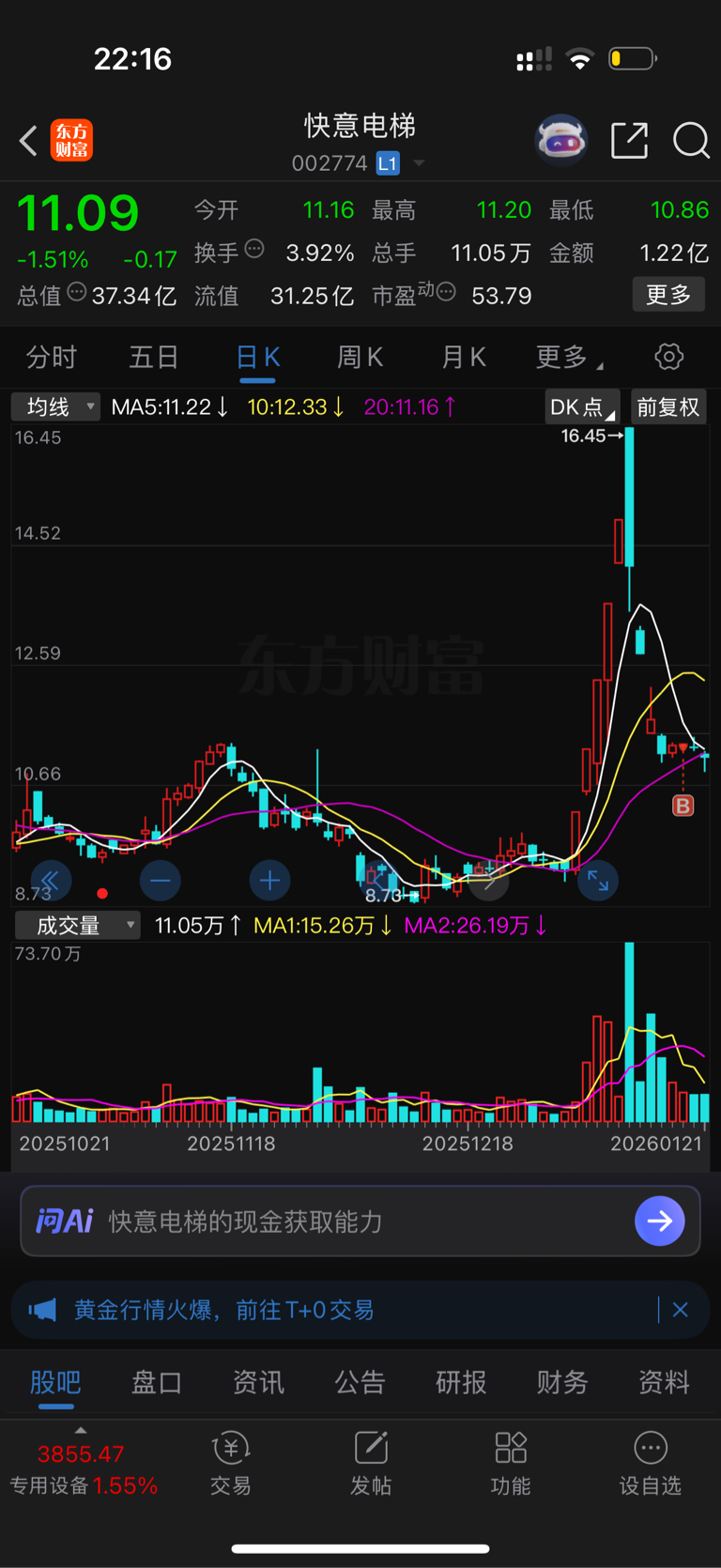 $快意电梯(SZ002774)$ 昨天买入的,涨5个点就出跌5个点就加仓,中间波段无视