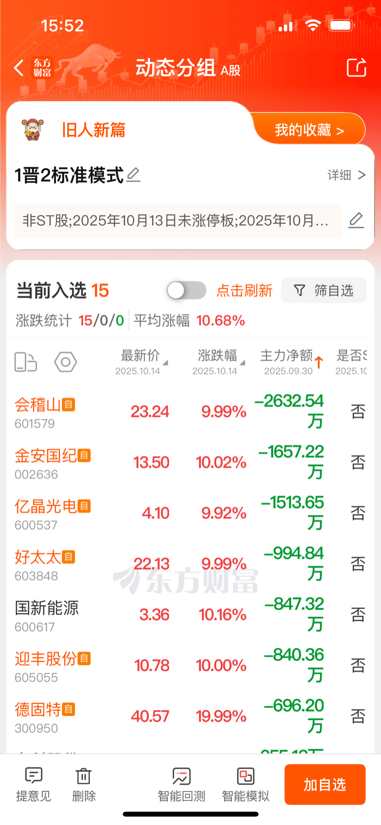 10月15日,1晋2超前发布