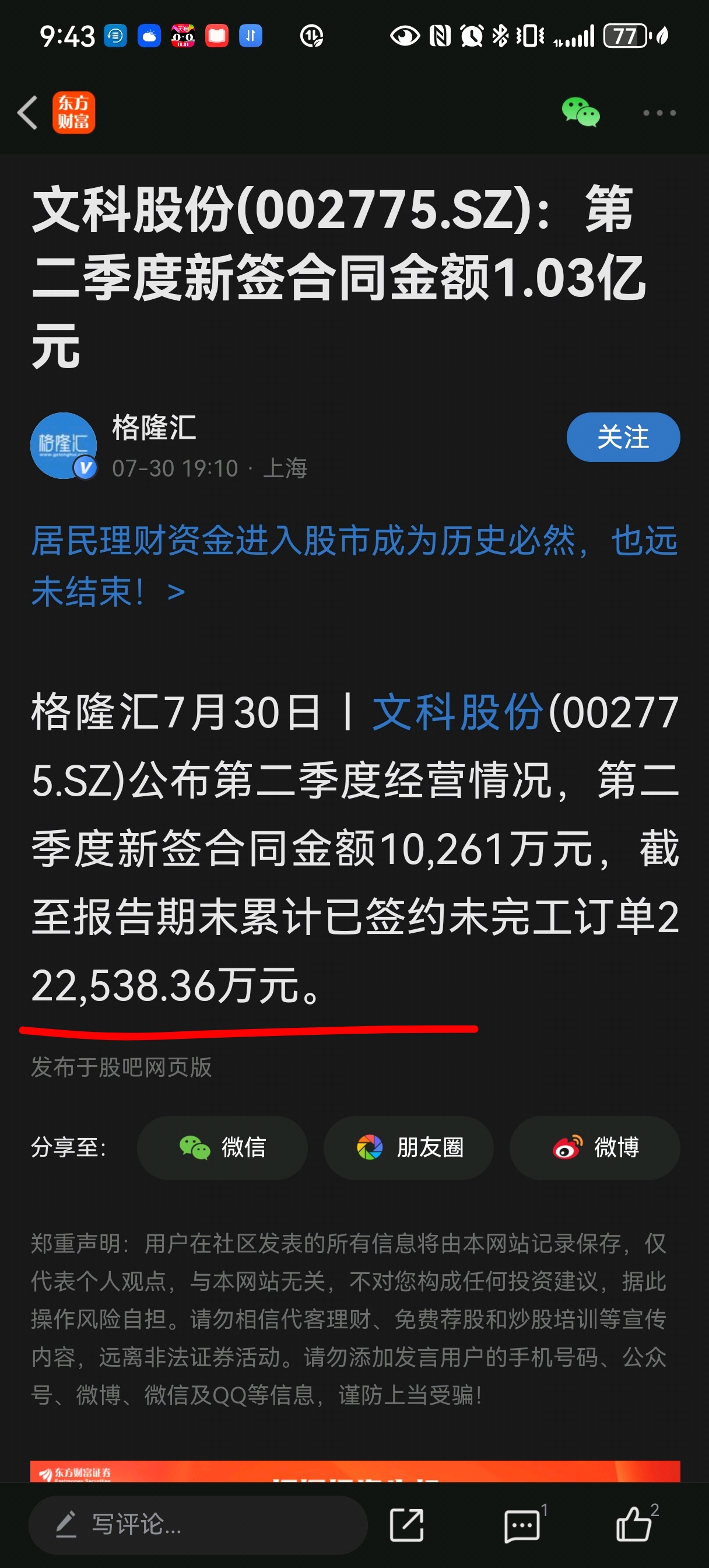 温馨提示: 1.根据《证券法》规定,禁止编造、传播虚假信息或者误导性信息,扰乱证券市场;2.用户在本社区发表的所有资料、言论等仅代表个人观点,与本网站立场无关,不对您构成任何投资建议。用户应基于自己的独立判断,自行决定证券投资并承担相应风险。《东方财富社区管理规定》