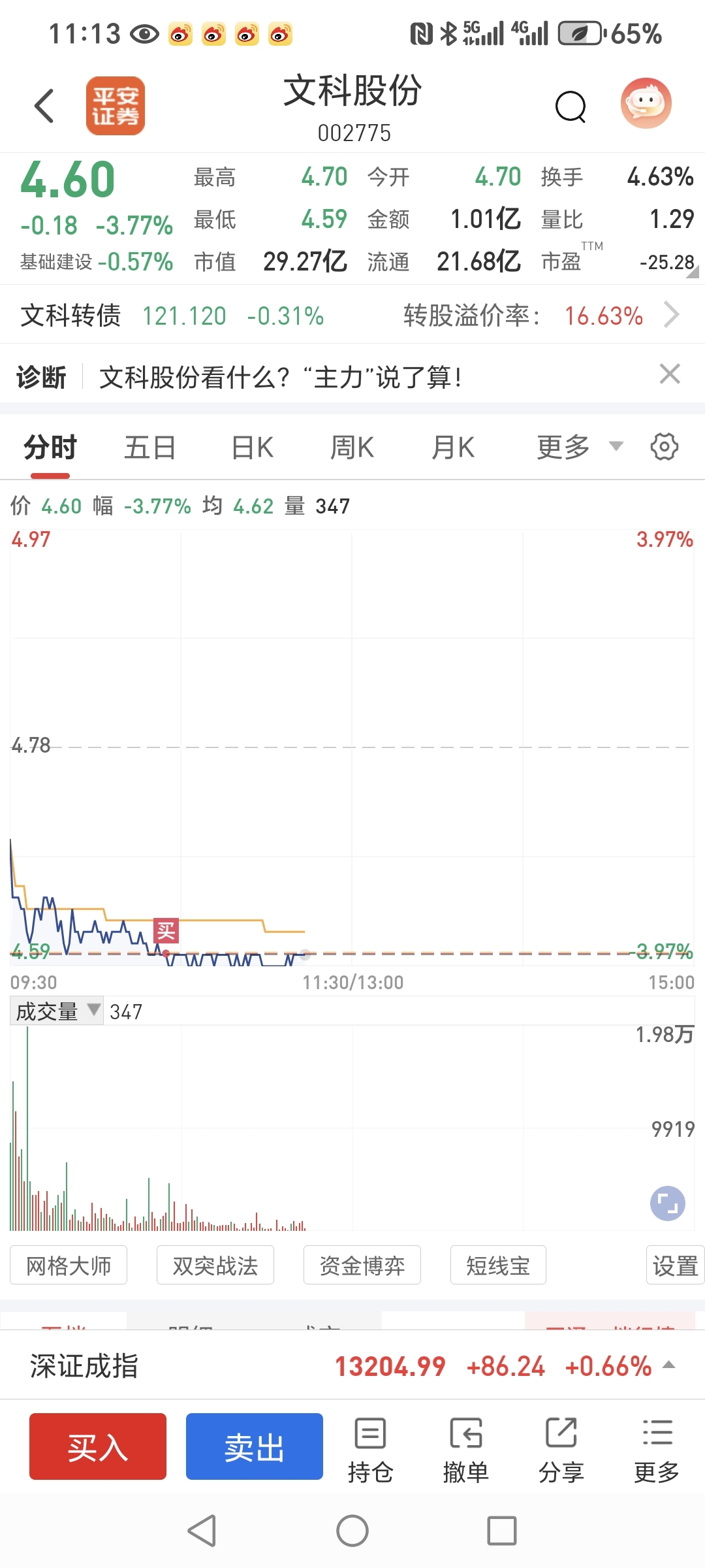 $文科股份(SZ002775)$ 进来了,希望明天有肉吃