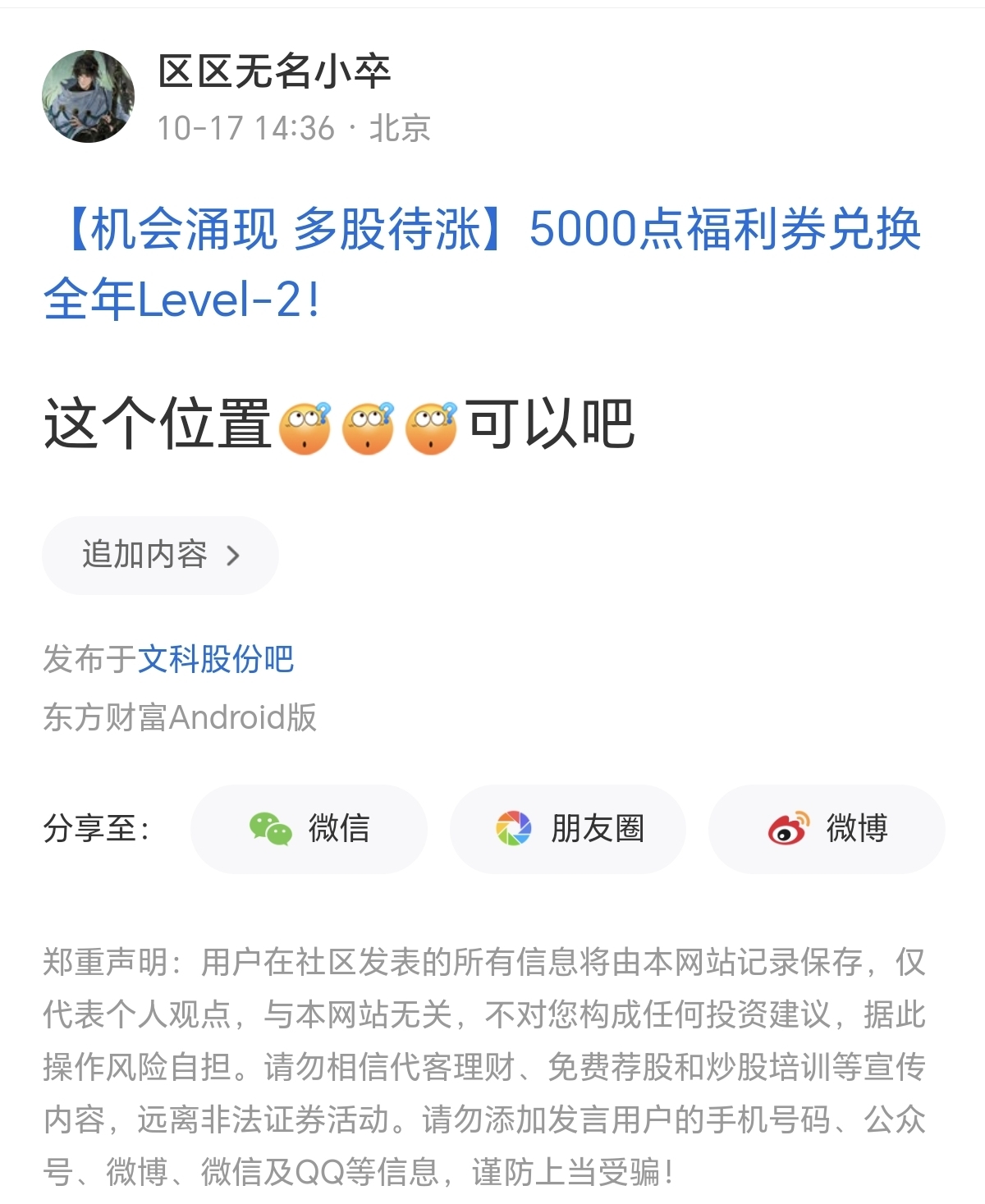 温馨提示: 1.根据《证券法》规定,禁止编造、传播虚假信息或者误导性信息,扰乱证券市场;2.用户在本社区发表的所有资料、言论等仅代表个人观点,与本网站立场无关,不对您构成任何投资建议。用户应基于自己的独立判断,自行决定证券投资并承担相应风险。《东方财富社区管理规定》