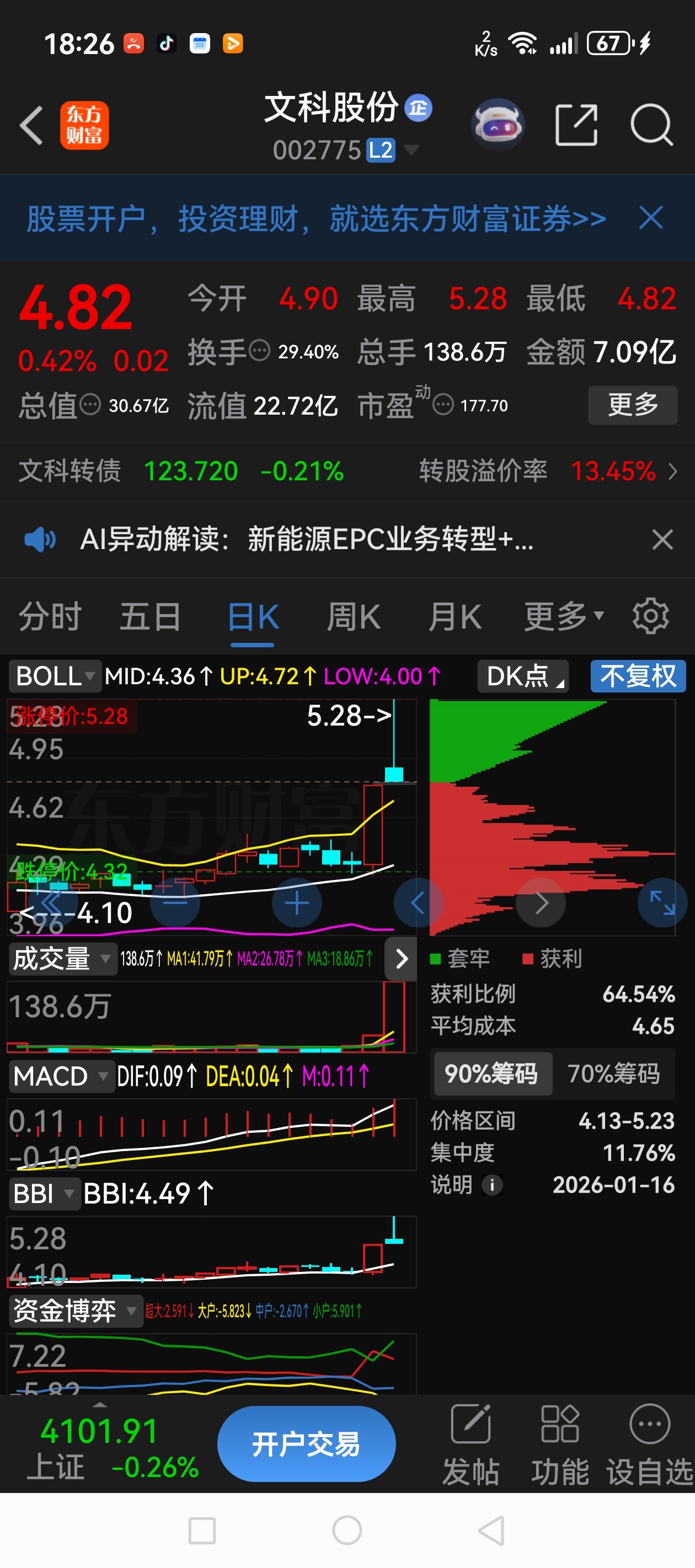 $文科股份(SZ002775)$ 下周希望,4.35能买进!