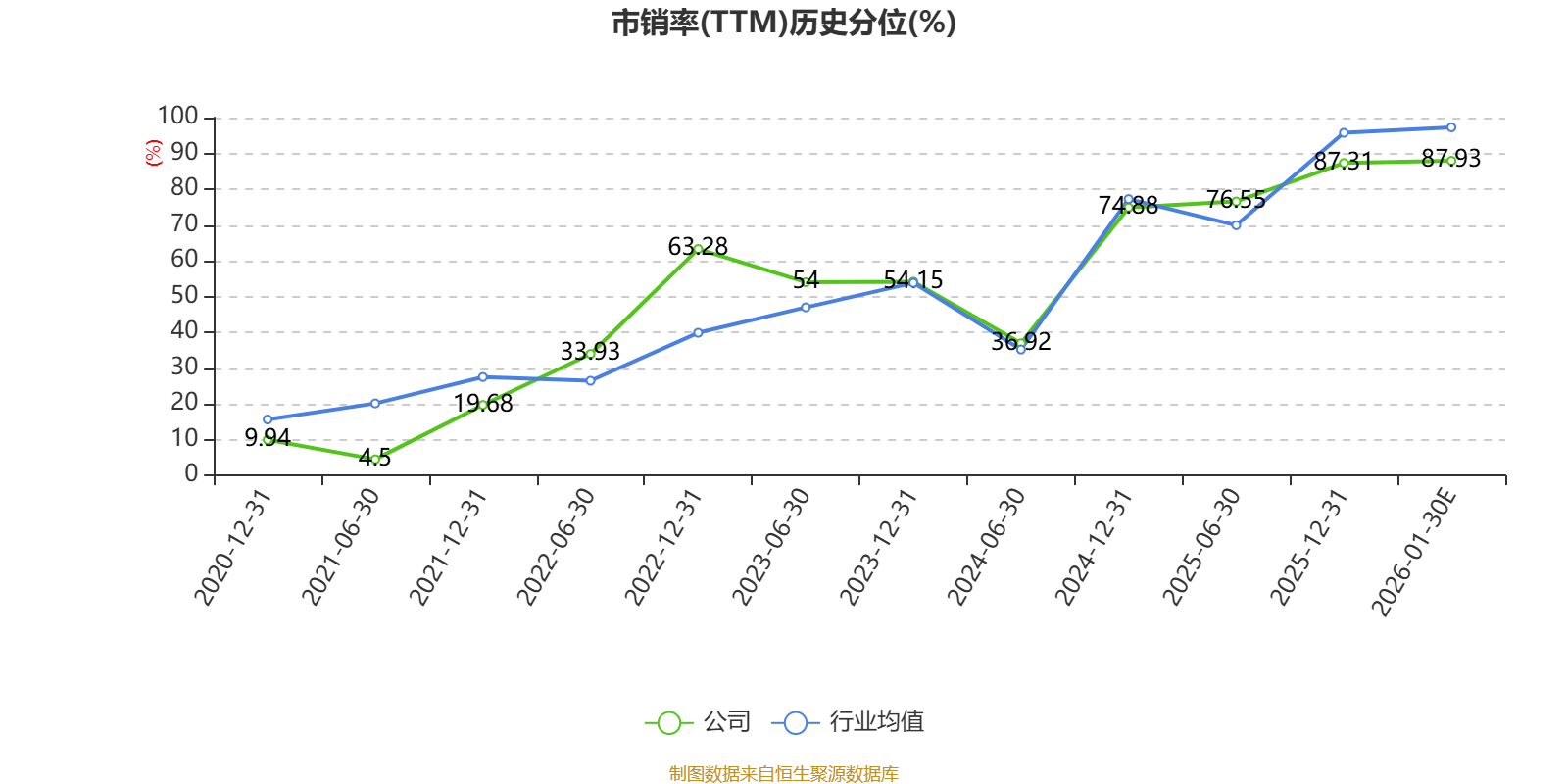 文中市盈率和市销率采用TTM方式,即以截至最近一期财报(含预报)12个月的数据计算。市净率采用LF方式,即以最近一期财报数据计算。三者的分位数计算区间均为公司上市以来至最新公告日。
