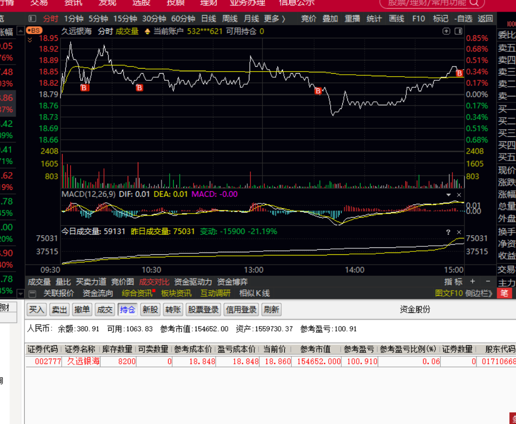 因为觉得全天走的不强,反正我没看出资金明显介入的痕迹,所以最终没敢多买,最后就买了一成仓。其实原本如果今天走的比较好,资金流入明显的话,我是打算赌一把全仓满上的。隔夜盘,反正下周一不管亏赚都要走。这个普通账户我是专门用来打新和买国债逆回购的,炒股的是信用账户。周五的逆回购太低了,这才是我想赌一把的原因。