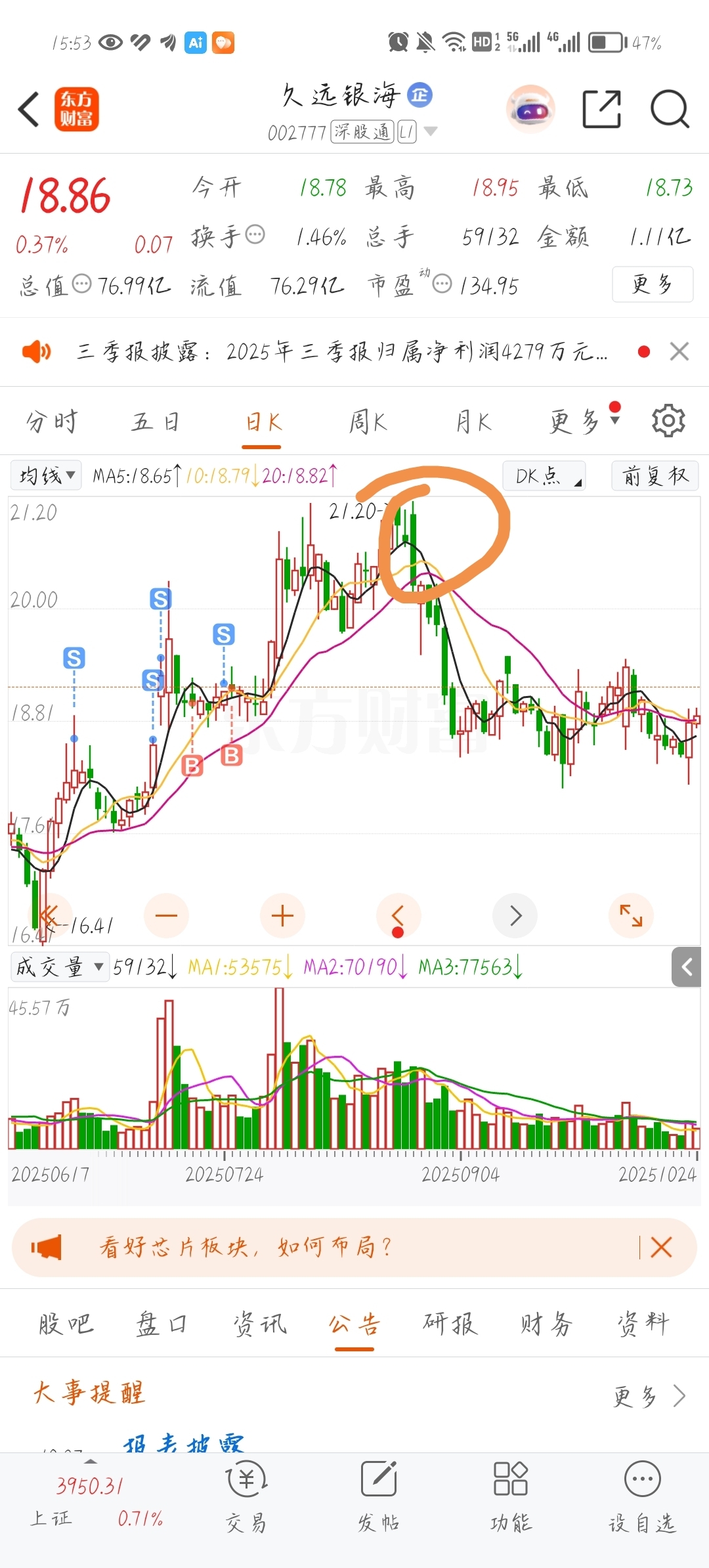$久远银海(SZ002777)$ 8月25半年报发布,当时增加160%!当天,开始阴跌跌了俩月!这次三季报,是不错!但是,柚子喜欢绩差的