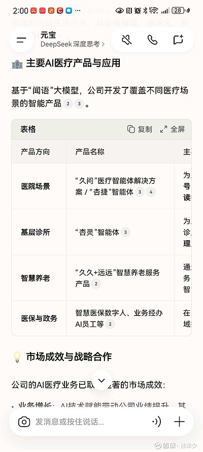 久远银海1、涉及智慧医疗,智慧医疗,服务于基层诊所,医院各大场景。2、加入蚂蚁阿福大模型医疗生态合作伙伴,医保支付端生态伙伴,服务于超1200家服务机构,在医保信息化领域是龙头企业。3.作为国家便捷医疗平台,方便群众,3年左右必须实现便捷医疗,这就直接利好平台企业 。所以久远银海只是不挖,深挖之下,才是最正宗的AI医疗龙头!