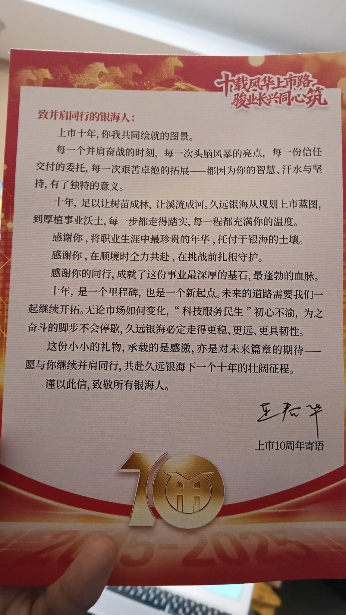 各位股东,10周年快乐