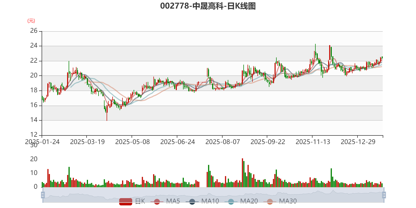 中证智能财讯中晟高科(002778)1月23日晚间披露2025年度业绩预告,预计2025年归母净利润7000万元,上年同期亏损1.7亿元;扣非净利润预计2000万元,上年同期亏损1.81亿元;基本每股收益0.56元/股。以1月23日收盘价计算,中晟高科目前市盈率(TTM)约为39.94倍,市净率(LF)约8.85倍,市销率(TTM)约12.46倍。