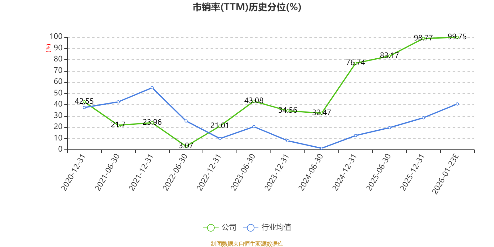 文中市盈率和市销率采用TTM方式,即以截至最近一期财报(含预报)12个月的数据计算。市净率采用LF方式,即以最近一期财报数据计算。三者的分位数计算区间均为公司上市以来至最新公告日。