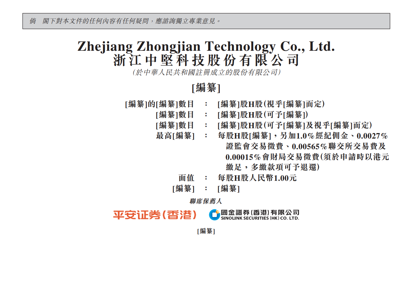 来了来了,提交招股书了。据港交所文件:浙江中坚科技股份有限公司向港交所提交上市申