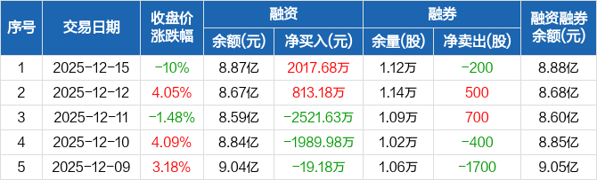 中坚科技:融资净买入2017.68万元,融资余额8.87亿元(12-15)