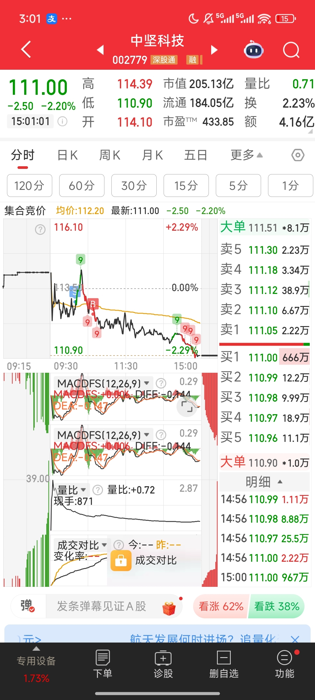 $中坚科技(SZ002779)$ 跌250,托单666,收盘111,生怕破坏了这数字
