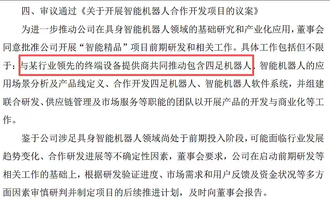$中坚科技(SZ002779)$ 中坚科技于今日审议通过《关于开展智能机器人合作开发项目的议案》,公告中特别提到公司会与某行业领先的终端设备提供商共同推动机器人相关业务!这个行业领先的终端设备提供商是谁啊,好难猜啊。