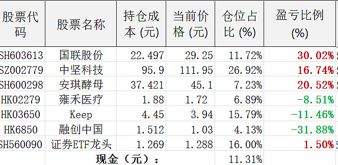 当前仓位分布表