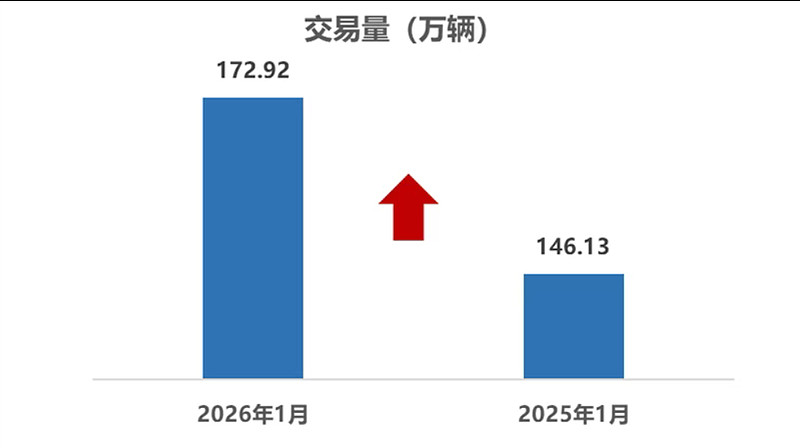 2026年1月,全国新车总销量为234.6万辆,同比下降3.2%,而全国二市场交易量达172.92万辆,同比增长18.33%!看了这组数据对比,明显感觉到,现在新车和二手车的销量差距正在快速缩小。