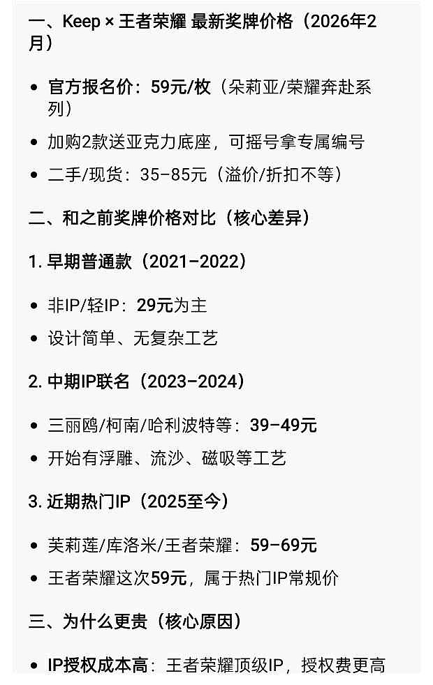 前几天分享了我观察到的一个小细节,现在 Keep 的奖牌不管是设计还是工艺都越来越精细,材质、细节、联动 IP 都在升级,同时定价也稳步上调,这恰恰说明产品力和用户认可度都在提升。