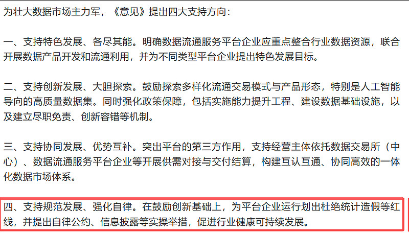一则消息分享:近日,国家数据数据发展研究院专家解读《关于培育数据流通服务机构 加快推进数据要素市场化价值化的意见》,首次明确指出产业互联网平台是数据流通服务平台企业的主力之一,是推动各行业数据资源开发利用的主力军,应做优做强,以更好地释放数据赋能产业发展的新动能。