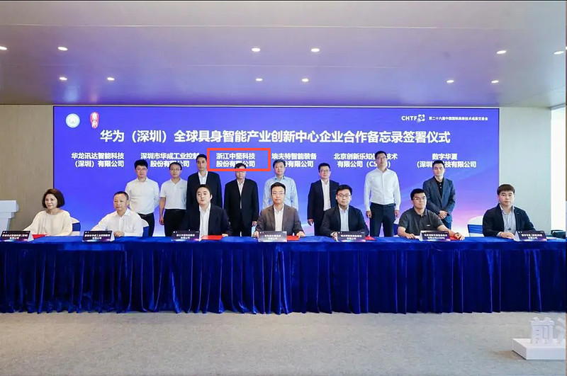 2024 年 11 月 15 日,彼时中坚科技作为首批核心企业,出席华为(深圳)全球具身智能产业创新中心签约仪式,签署企业合作备忘录,正式加入华为具身智能生态。这是双方机器人合作的官方起点。