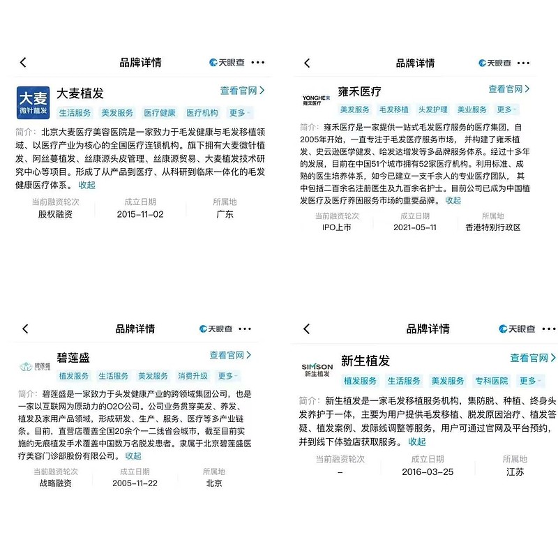 目前国内植发市场的格局比较清晰,大麦、雍禾、盛、新生四大连锁机构占据 70% 的市场份额。
