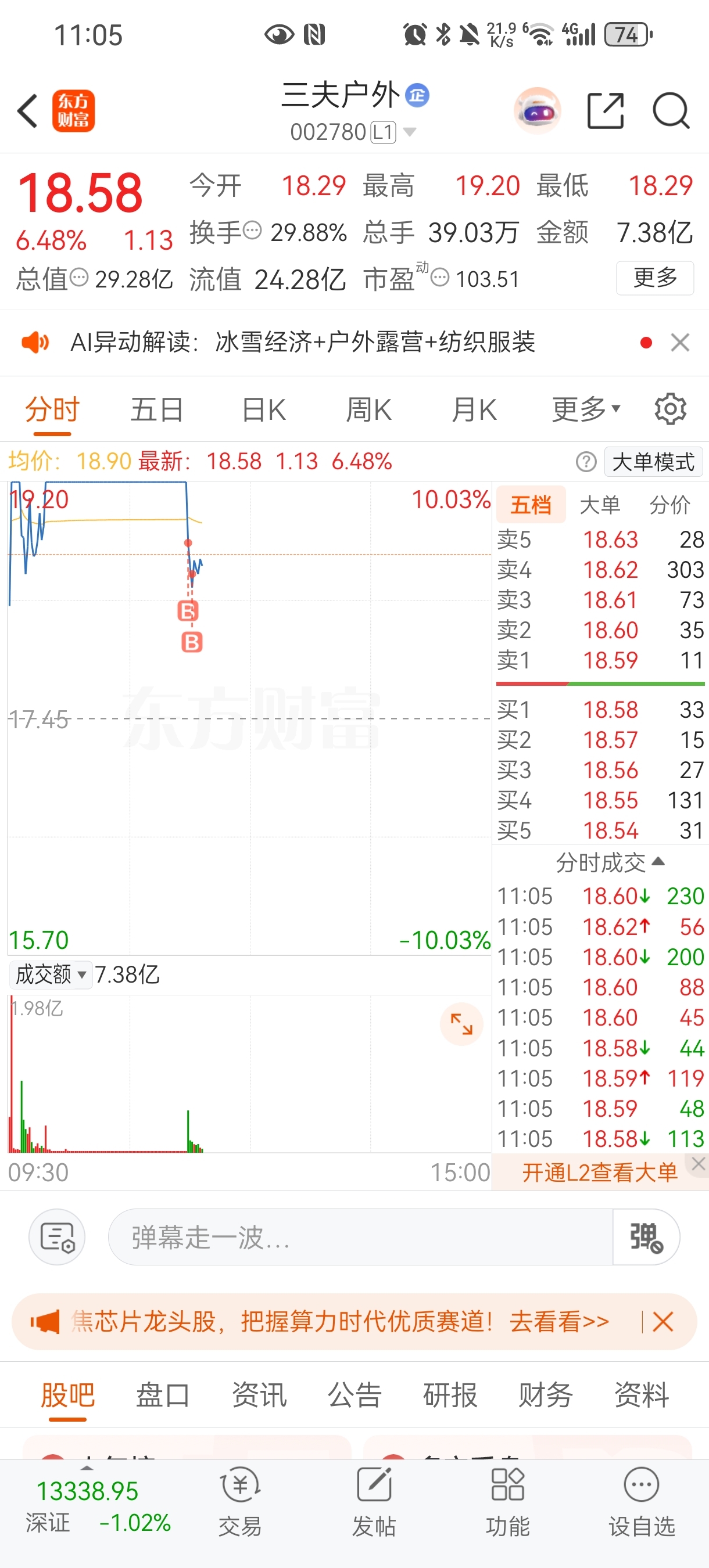 $三夫户外(SZ002780)$ 买买买