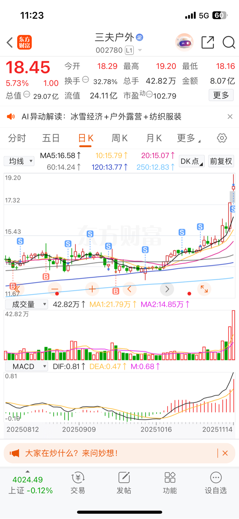 $三夫户外(SZ002780)$ 挣50几个点走啦