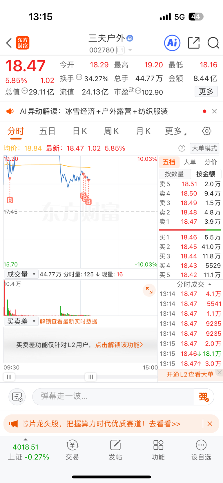 $三夫户外(SZ002780)$ 只能帮你们到这