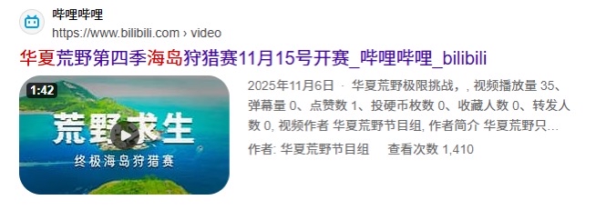 华夏荒野第四季海岛赛 11 月 15 日开赛