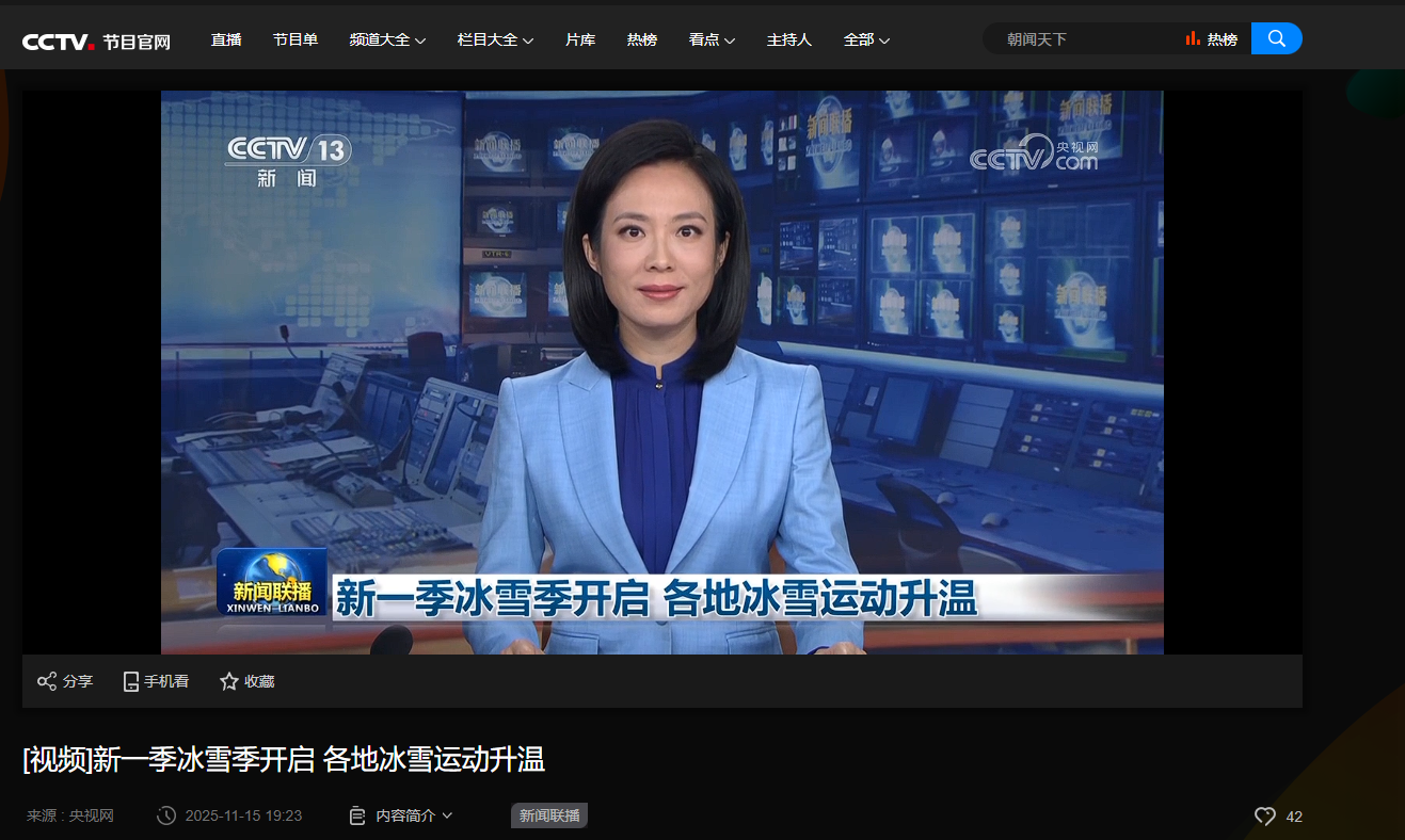 央视新闻联播今晚报道冰雪季开启 冰雪运动升温!