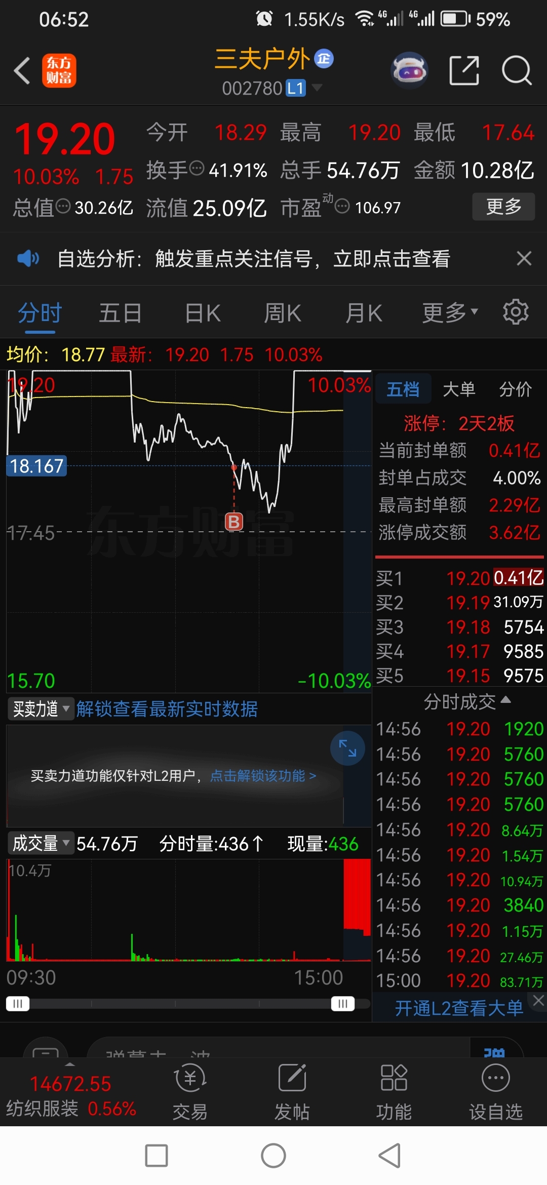 $三夫户外(SZ002780)$ 星期五早上18.15的挂单