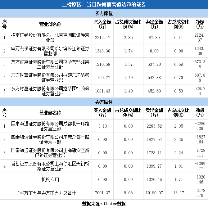 机构现身龙虎榜,三夫户外跌停(11-17)