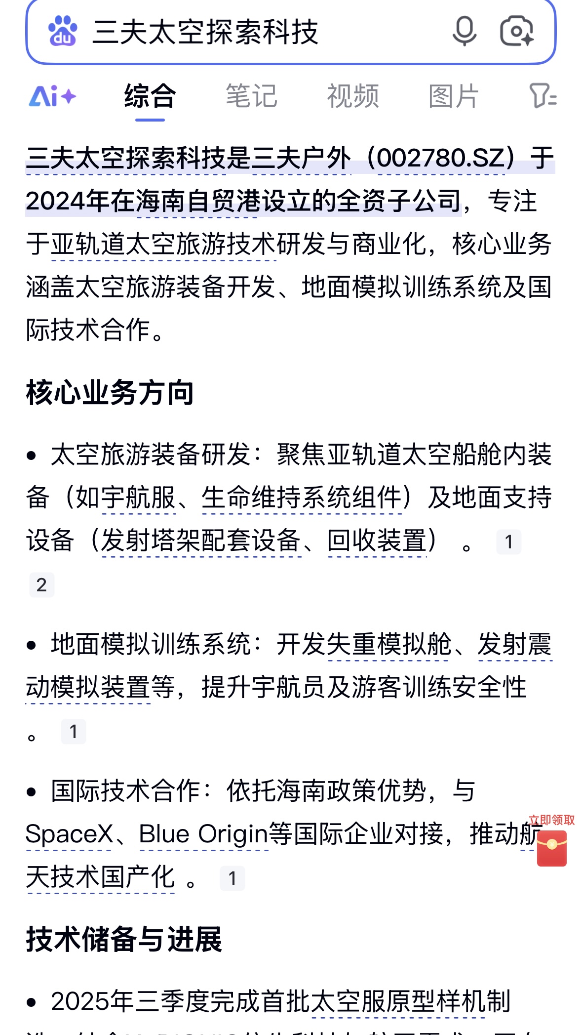 明天涨停?商业航天+海南,百度也能搜索到三夫太空探索科技