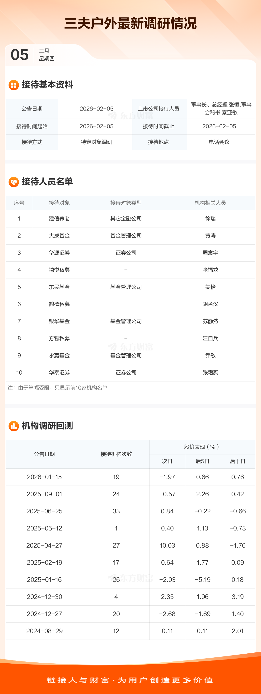 【调研快报】三夫户外接待建信养老等38家机构调研