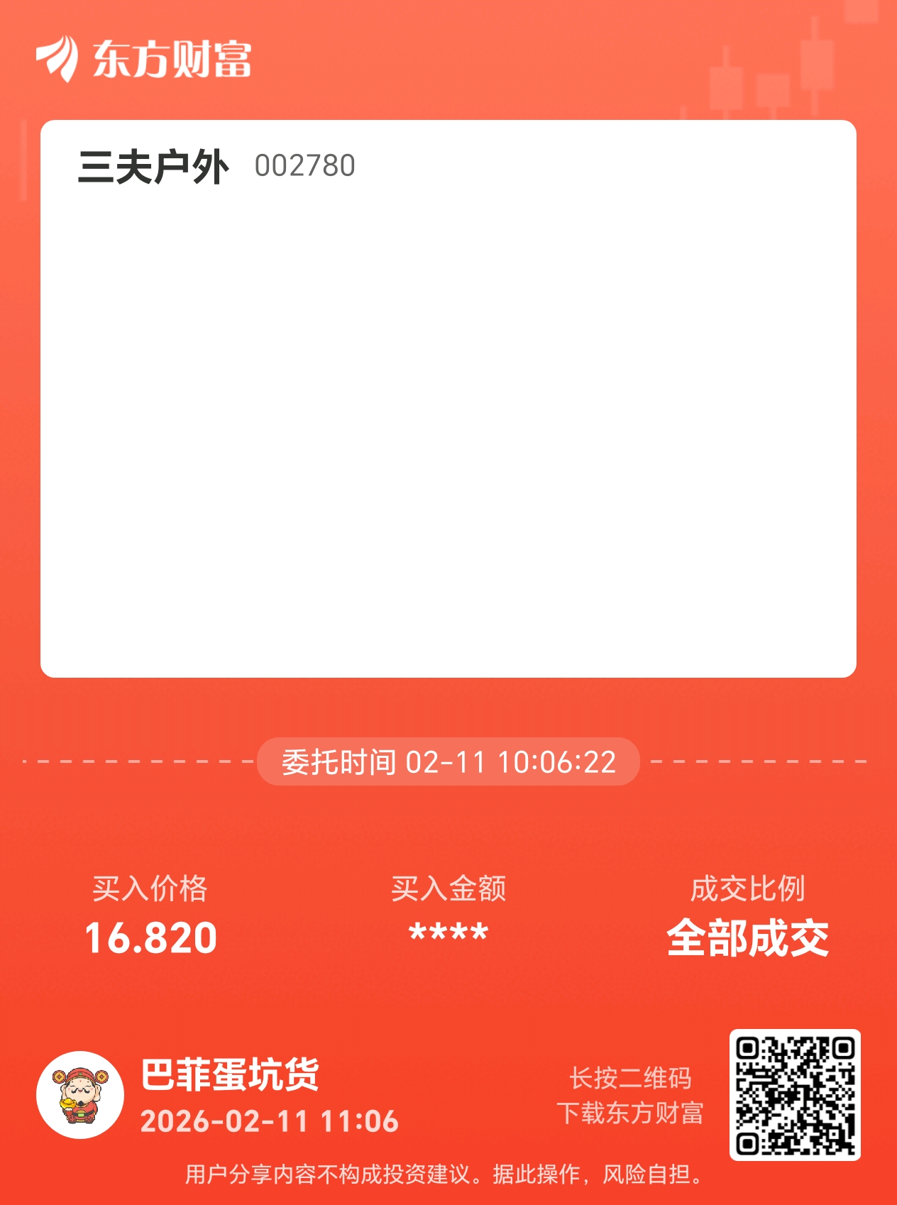 温馨提示: 1.根据《证券法》规定,禁止编造、传播虚假信息或者误导性信息,扰乱证券市场;2.用户在本社区发表的所有资料、言论等仅代表个人观点,与本网站立场无关,不对您构成任何投资建议。用户应基于自己的独立判断,自行决定证券投资并承担相应风险。《东方财富社区管理规定》