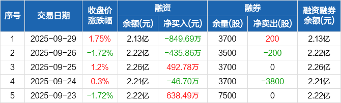 可立克:融资净偿还849.69万元,融资余额2.13亿元(09-29)