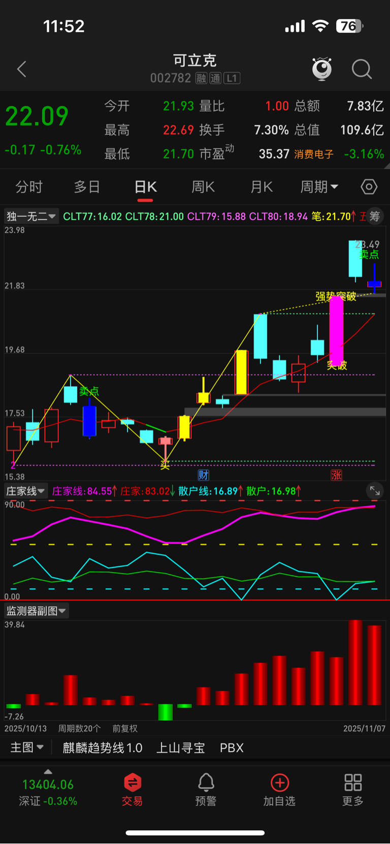 $可立克(SZ002782)$ 周一大概率低开了,如果不高走我要跑啦