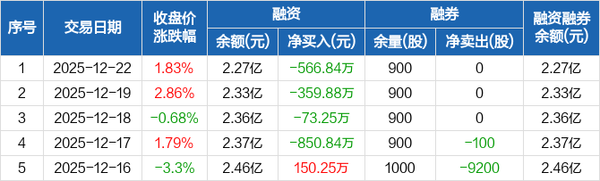 可立克:连续4日融资净偿还累计1850.81万元(12-22)
