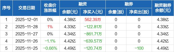 凯龙股份:融资净买入562.39万元,融资余额4.38亿元(12-01)