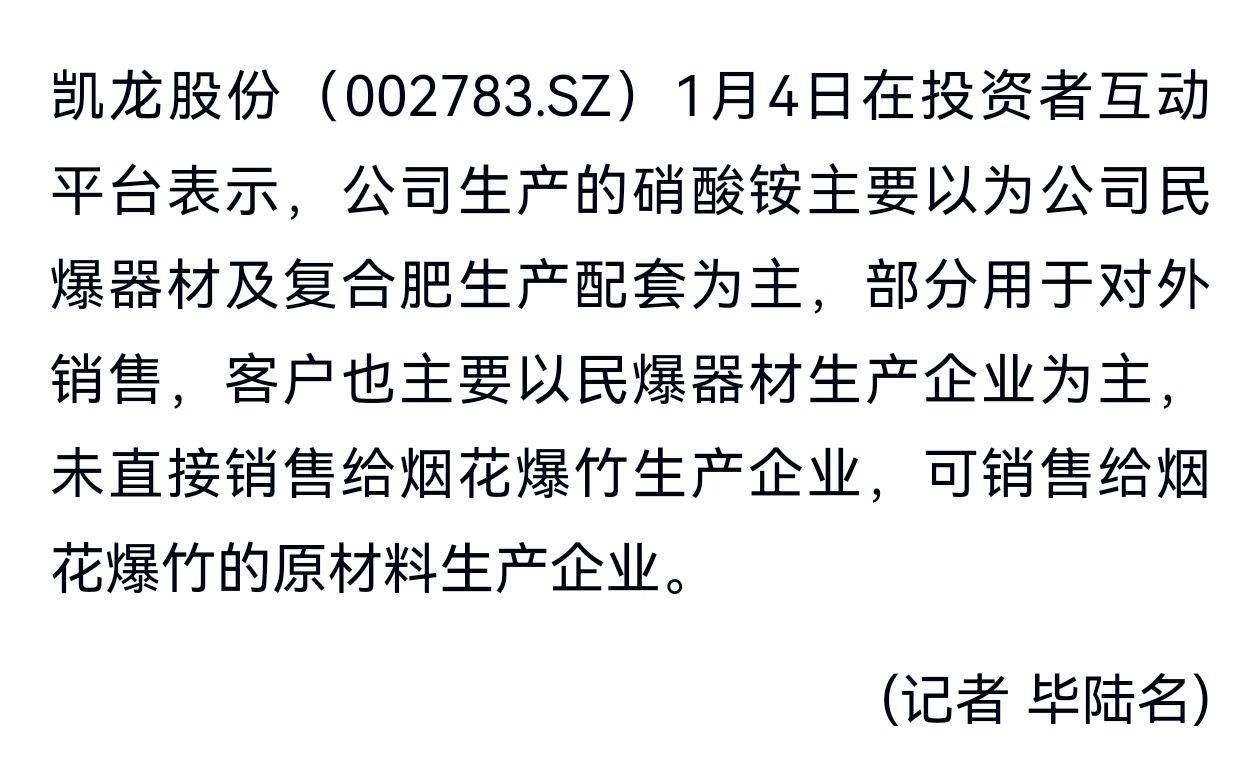 $凯龙股份(SZ002783)$ 烟花炮竹的原材料生产企业供应商