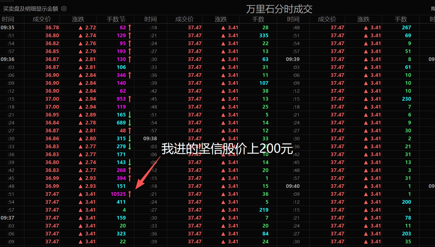 这10525手大单我进去了,我就坚信上200元,万里石我挺你。加油!