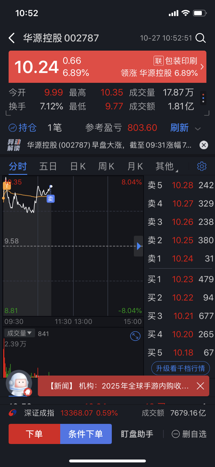 $华源控股(SZ002787)$ 先减半仓再说,降低持仓风险